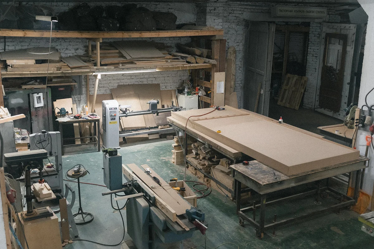 Наше столярное производство занимает более 1000 кв. м и выполняет все виды столярных работ: от первичной обработки и сушки древесины до покраски готового изделия. Столярный цех оснащён парком станков и современным технологическим оборудованием, что позволяет достигать высокой точности, создавать декорации разной сложности, выполнять крупные серийные заказы и работать над уникальными проектами по индивидуальным эскизам.